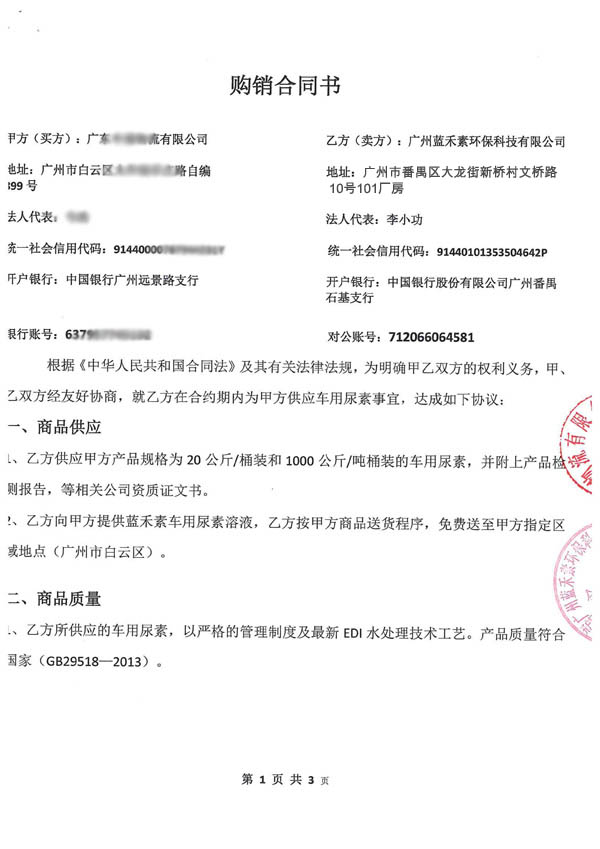 廣州藍禾素環保科技有限公司,是一家專業生產車用尿素溶液,尿素脫硝劑氮氧化物還原劑